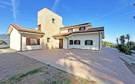 In the first hills of Camporosso, nestled in the tranquility of the countryside but just a few minutes from the center and the sea, we offer for sale a generously sized villa surrounded by a lush, flat garden with panoramic views stretching from the valley to the Ligurian Sea.